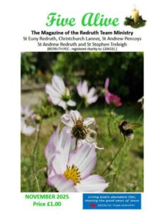 Pew Sheets and Newsletters Weekly Prayer and News Sheet w/b 2nd November 2025 Moving Forward Together Newsletter November 2nd 2025 Weekly Prayer and News Sheet w/b 26th October 2025 Moving Forward Together Newsletter October 26th 2025 Church Events List 2025 Click on the image above to see a list of events in all of our churches throughout the year. New events are added regularly, so please check back often.To have an event added please email the Team Office at enquiries@redruthchurch.org.uk Five Alive Magazines Click on the cover above to see and download the latest edition of Five Alive Magazine, or any back issues.